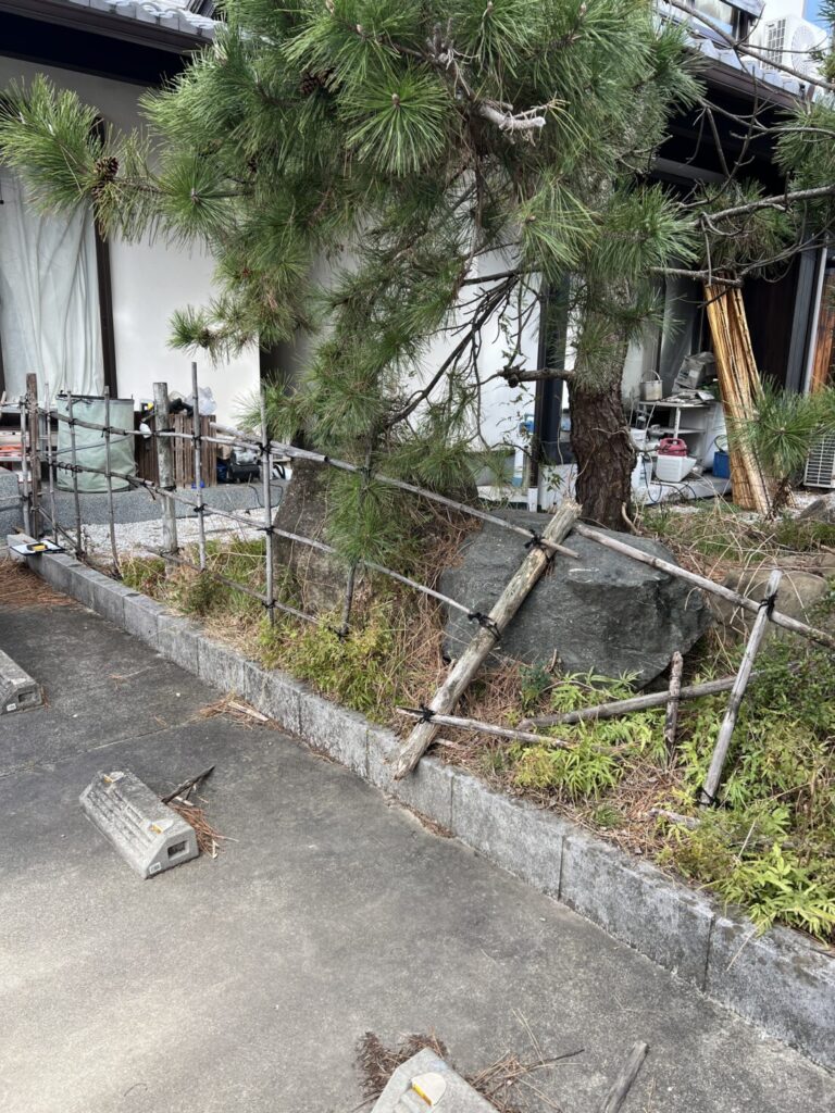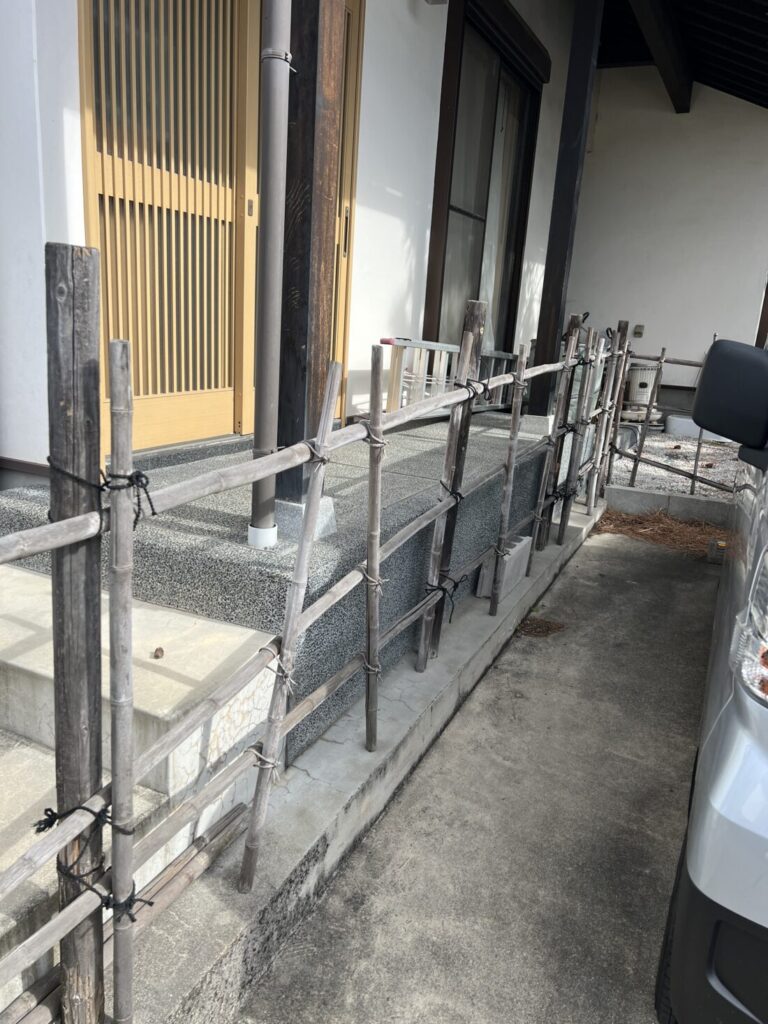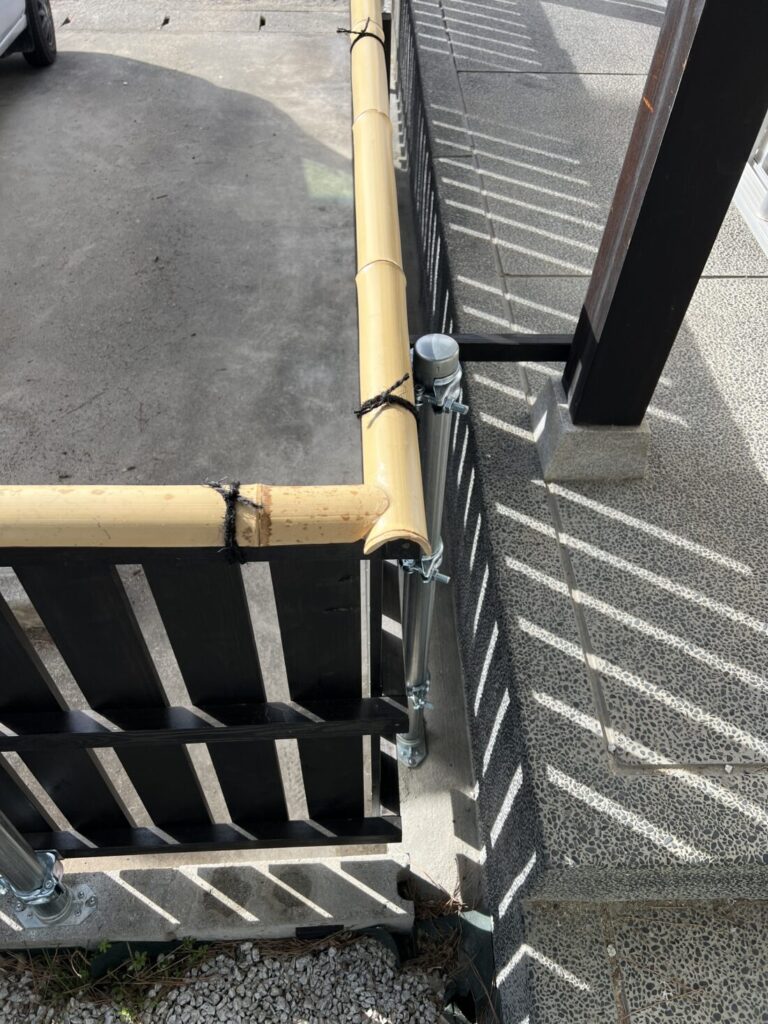 外構エクステリア和風フェンスの設置工事 公開日:2025/10/16 / 最終更新日:2025/10/16 一宮市 A様邸 立派な和風のお宅の雰囲気にマッチするよう既成のアルミ製品ではなく天然の竹と木材やシュロ縄を使用しました。