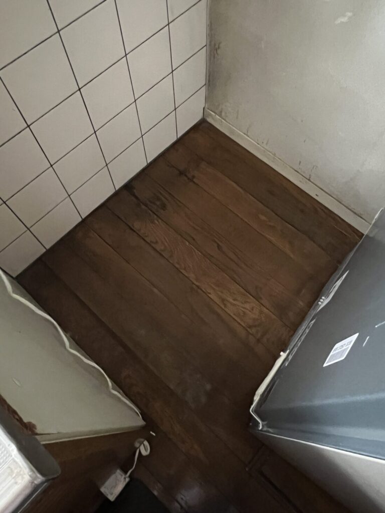 冷蔵庫の故障で水漏れがありキッチンの床廻りが大変なことになってしまいました。