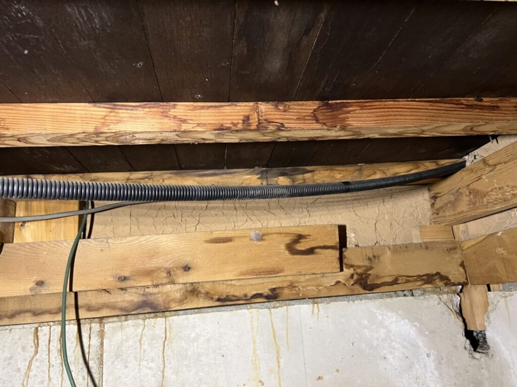 今回はお客様の加入している火災保険のほうで対応できる可能性がありましたので、ひとまず応急処置と保険会社様へ提出用の写真と見積書の作成をしました。